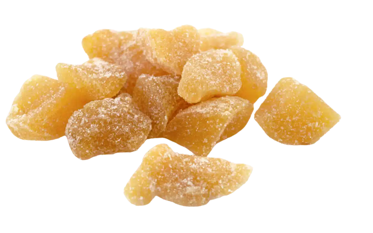 Spicy-sweet chunks of ginger coated in sugar – great for baking, confections, or digestive support.