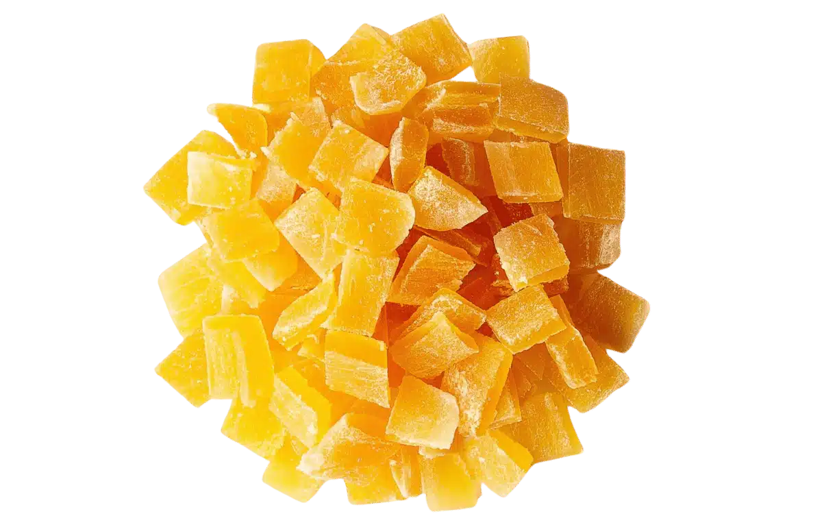 Bright and juicy dried papaya cubes – great for snack mixes, cereals, or tropical baking.