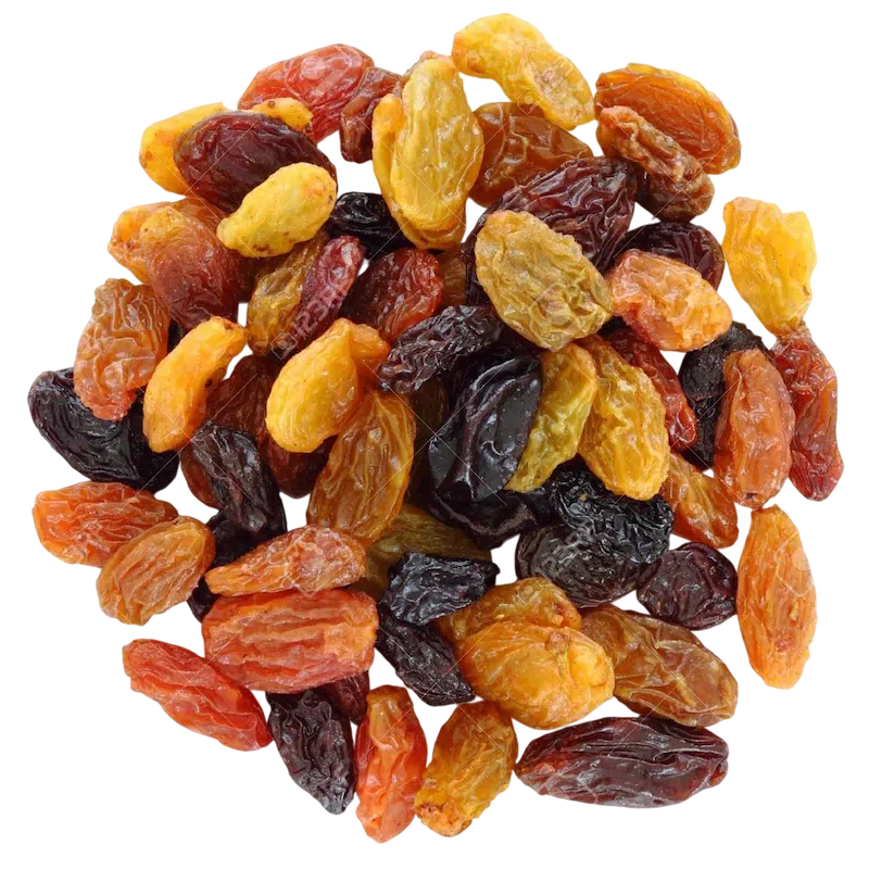 A colourful mix of golden, black, and green raisins – ideal for baking or snacking.